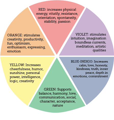 - Groen: vermindert mentale vermoeidheid en bevordert harmonie.